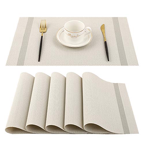 Results OUME Placemats Set of 6 Dining Table Mats Woven Vinyl PVC Placemats Non-slip Heat-resistant Washable